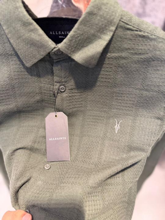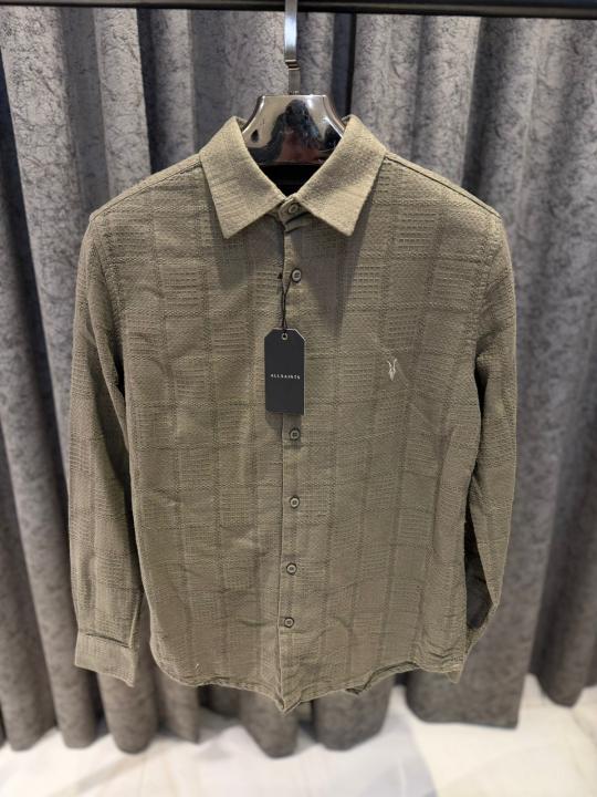 ALLSAINTS CHEST LOGO FULL SLEEVES IMPORTED SHIRT WHITE LIGHT GREEN