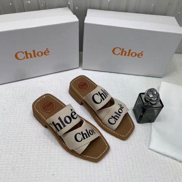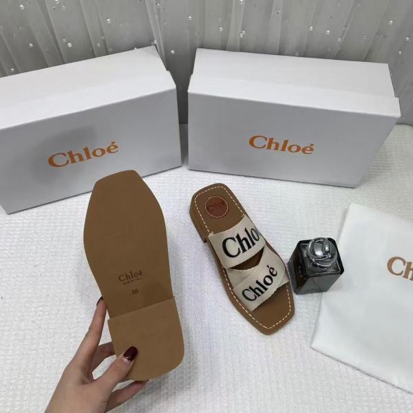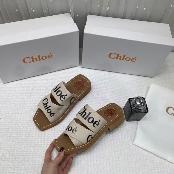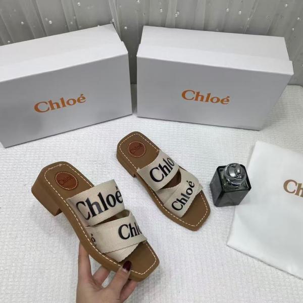 Chloe Premium Woody Mid Heel Slides With OG Box Dust Cover Beige White CH19