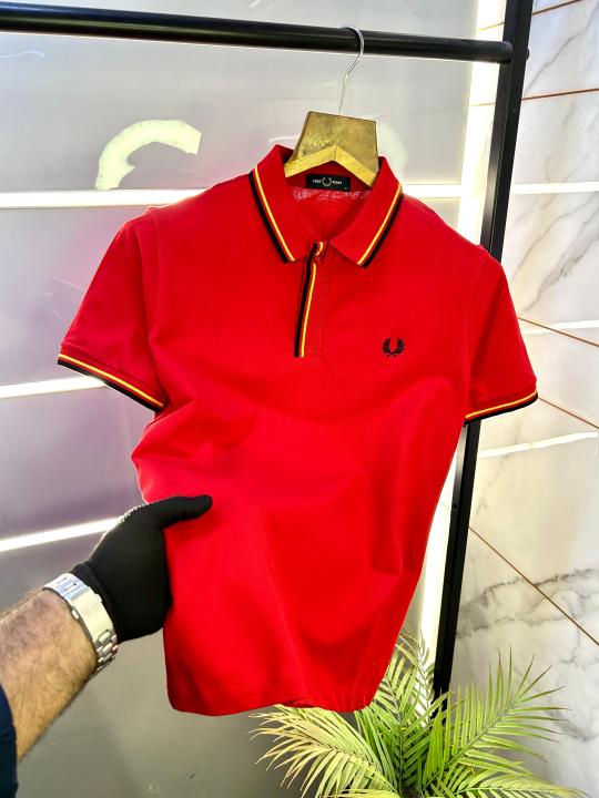 Home T-Shirts Fred Perry Red Polo Premium Collar Neck T-shirt F2998-RE