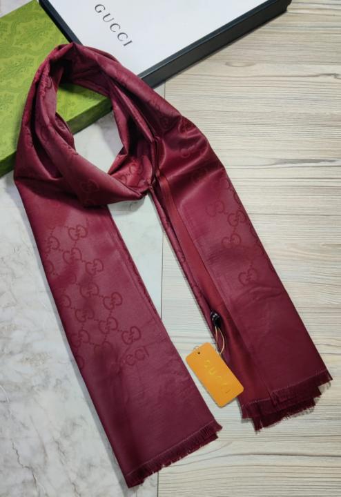 Gucci_Wine_Red_GG_Monogram_Logo_Luxury_Cotton_Pashmina_Scarf_With_Polythene