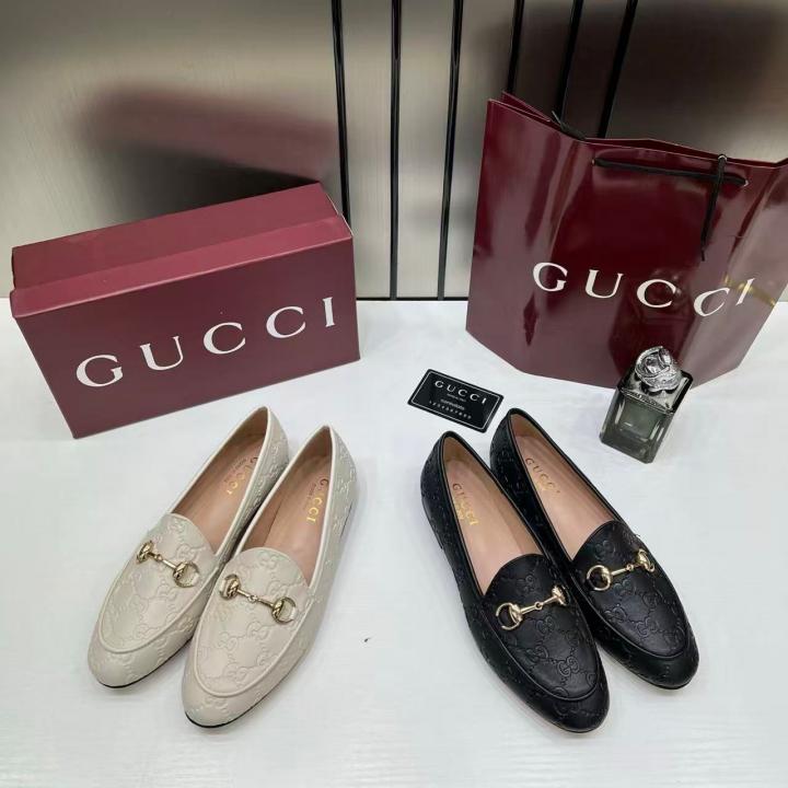 Gucci_Womens_Jordaan_Loafers_Wid_OG_Box_&_Carry_Bag_Beige_White_A885-1C