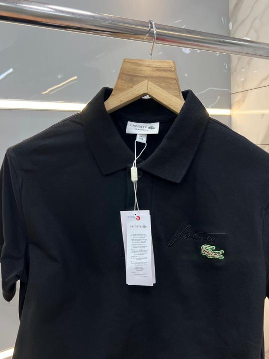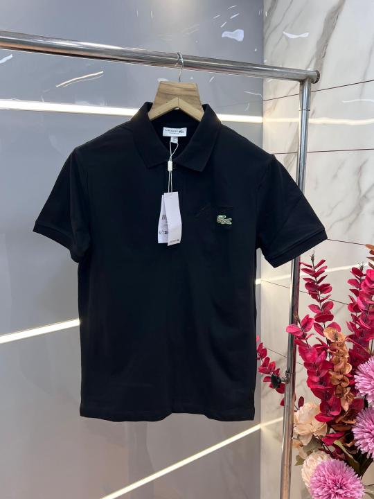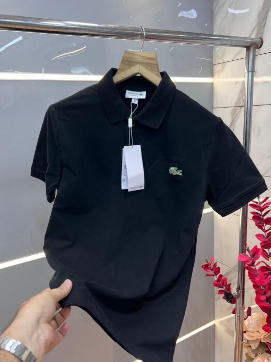 Home T-Shirts Lacost e Black Premium Cotton Lycra Pique fabric Polo Tshirt with Embroidered Logo 3382