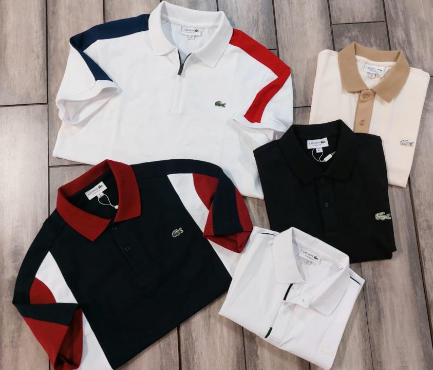 Lacost e Cream Premium Cotton Lycra Pique fabric Polo Tshirt with Front Design and Embroidered Logo 3389