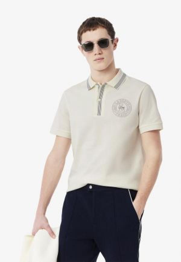 Home T-Shirts Lacost e Cream Premium Cotton Pique fabric Polo Tshirt with Collar Design and Embroidered Logo 2554