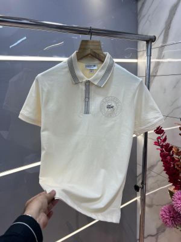 Lacost e Cream Premium Cotton Pique fabric Polo Tshirt with Collar Design and Embroidered Logo 2554