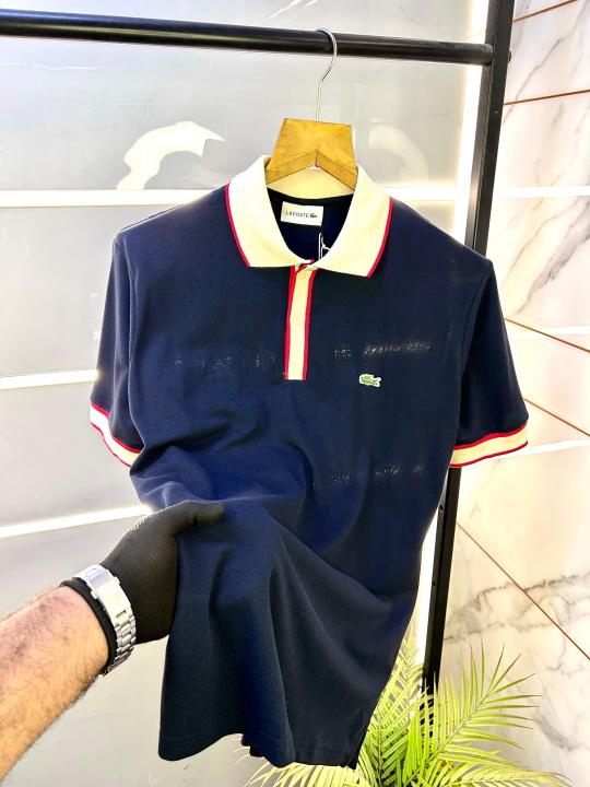 Home T-Shirts Lacost e Navy Polo Premium Collar Neck T-shirt F2974-NY