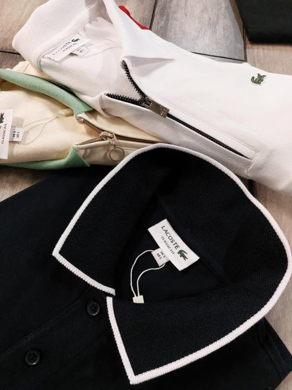 Lacost e White Premium Cotton Pique fabric Polo Tshirt with Collar Design and Embroidered Logo Zip Style 3111