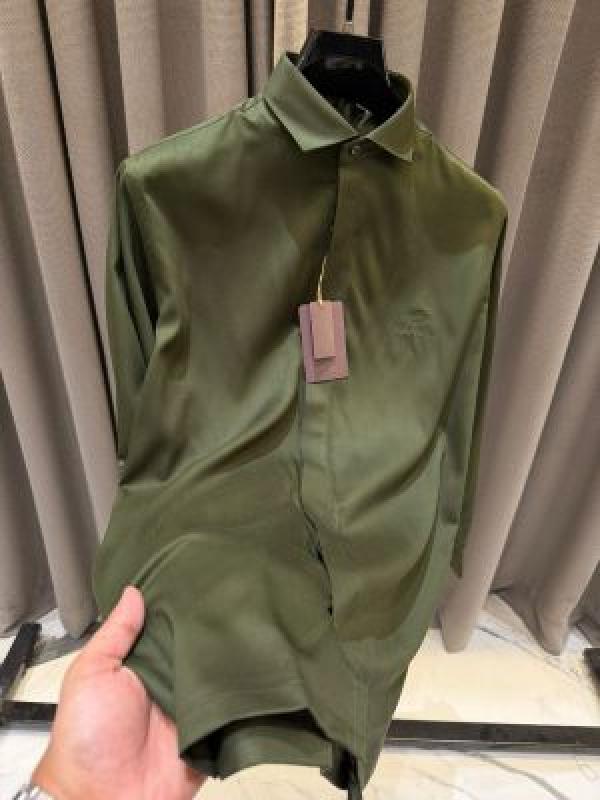 Lorro Piana Imported Korean Fabric Box Pack Full Sleeves Shirt Olive
