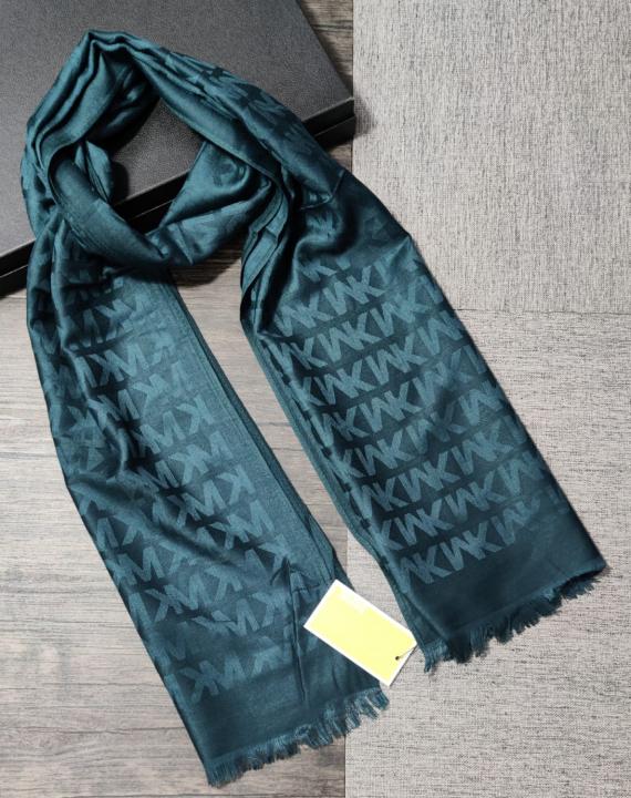 Michael_Kors_Teal_Green_Tonal_MK_Monogram_Logo_Luxury_Cotton_Pashmina_Scarf_With_Polythene