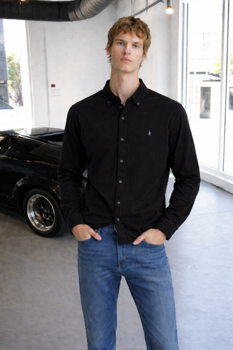 RALP-H L-AUREN P-OLO IMPORTED STORE ARTICLE SHIRT BLACK AND GREY