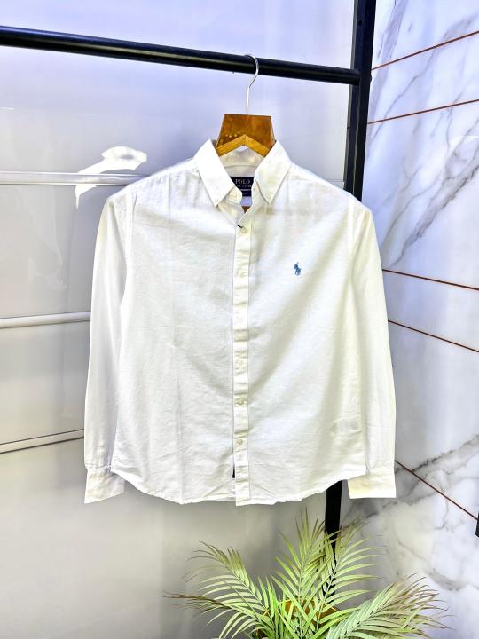 Home Shirts Ralph_Lauren Polo White Linen Premium Shirt F2951-WH