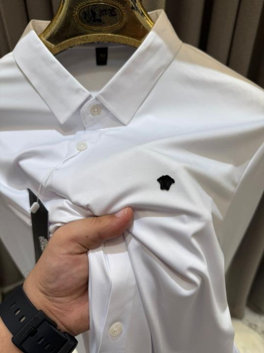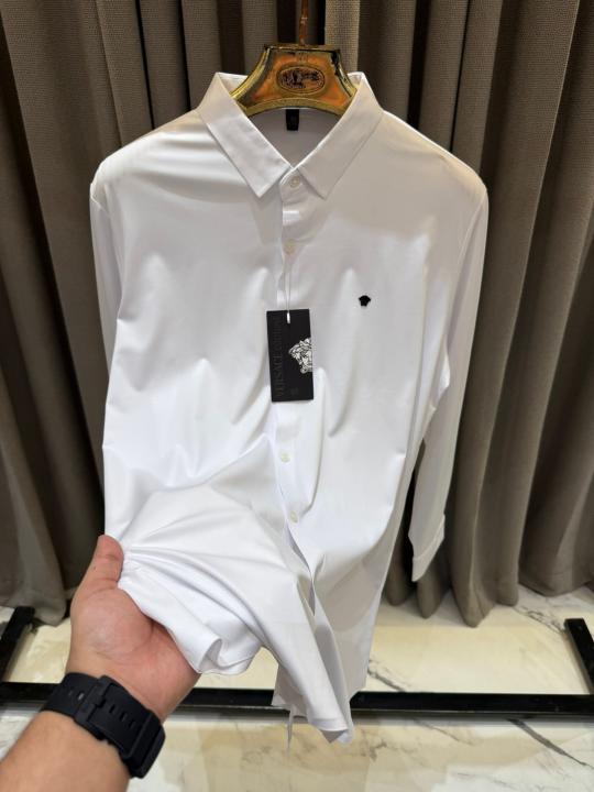 Versace Chest Metal Logo Japanese Lycra Full Sleeves Shirt White
